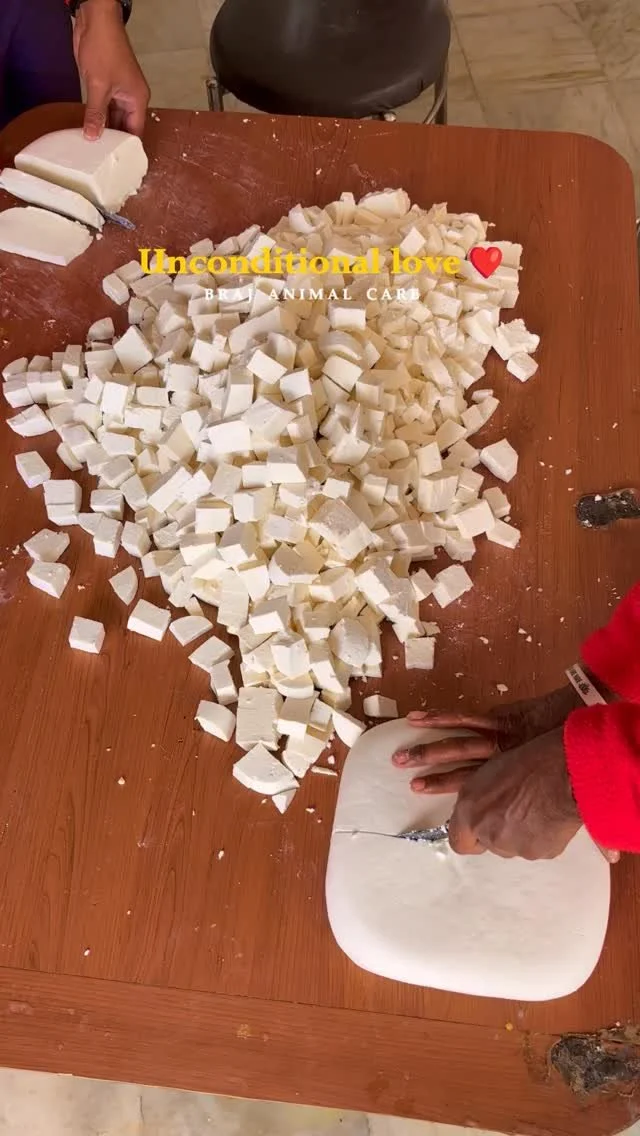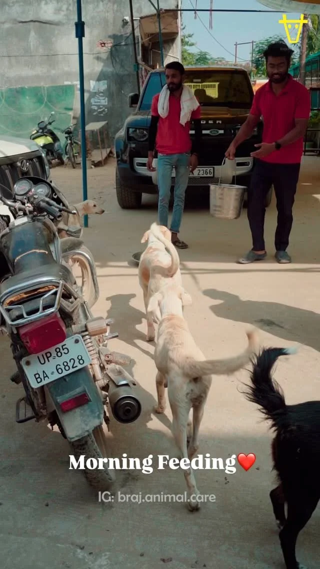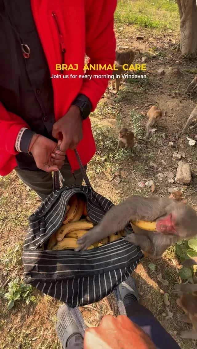 Our daily feedings include milk, fruits and chickpeas to Braj animals such as dogs and monkeys.