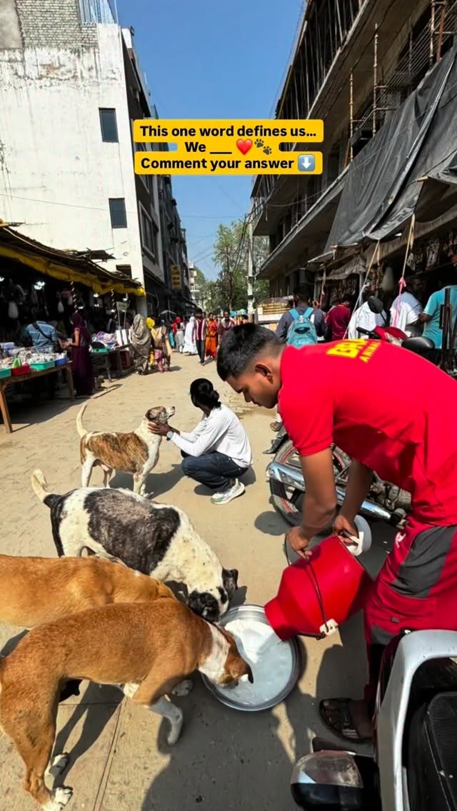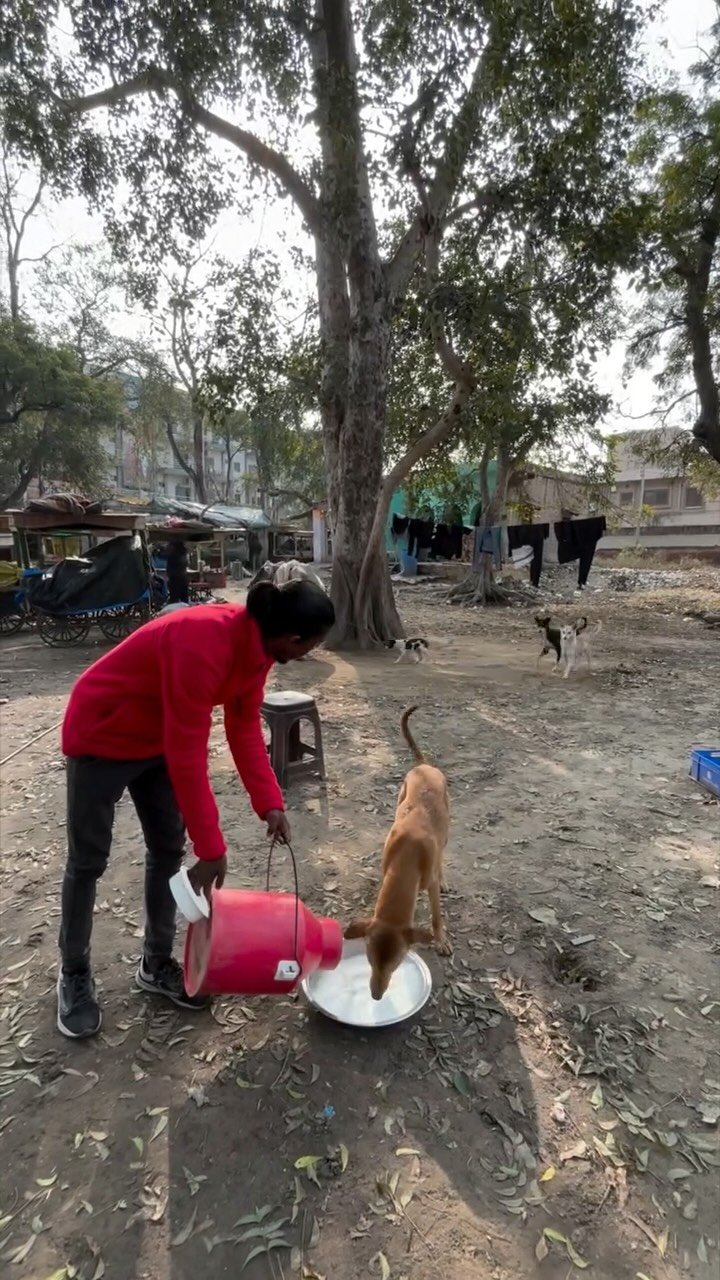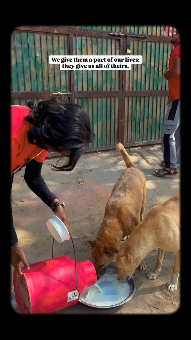 On my first morning in Vrindavan, I joined a small group of Braj Animal Care volunteers for the stray-dog feeding seva. Carrying a canister of milk, we walked through the familiar lanes where the dogs seemed almost to be waiting for us. Some sat patiently at their usual spots, while others appeared suddenly, emerging from corners as if drawn by instinct. I was hesitant at first, unsure how close to get, but the quiet energy of the volunteers and the gentle presence of the dogs drew me in.